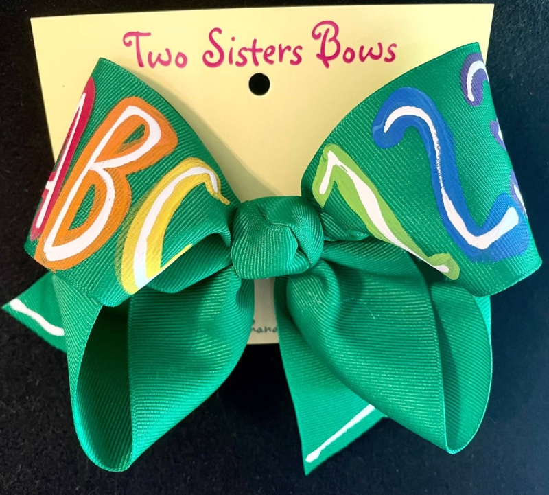 Hand painted ABCs and 123s make the cutest hair bow design to wear to school. See additional bow color options below for the perfect match.