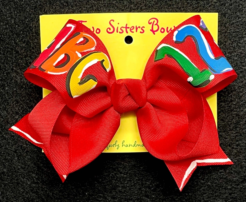 She'll adore wearing her ABCs and 123s on a hand painted hair bow to school. Additonal bow colors are listed below.